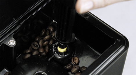 Puedes ajustar el nivel de molido con el botón que hay en el interior del contenedor de granos: desde molido fino para un espresso lleno de cuerpo hasta molido grueso para un café con un sabor más ligero. Ajusta el nivel de molido únicamente cuando la cafetera esté moliendo los granos de café. Para ajustar el molinillo, coloca una taza bajo la boquilla de salida de café. Pulsa el botón "Espresso" y, cuando el molinillo empiece a moler, cambia el nivel con el botón de ajuste.