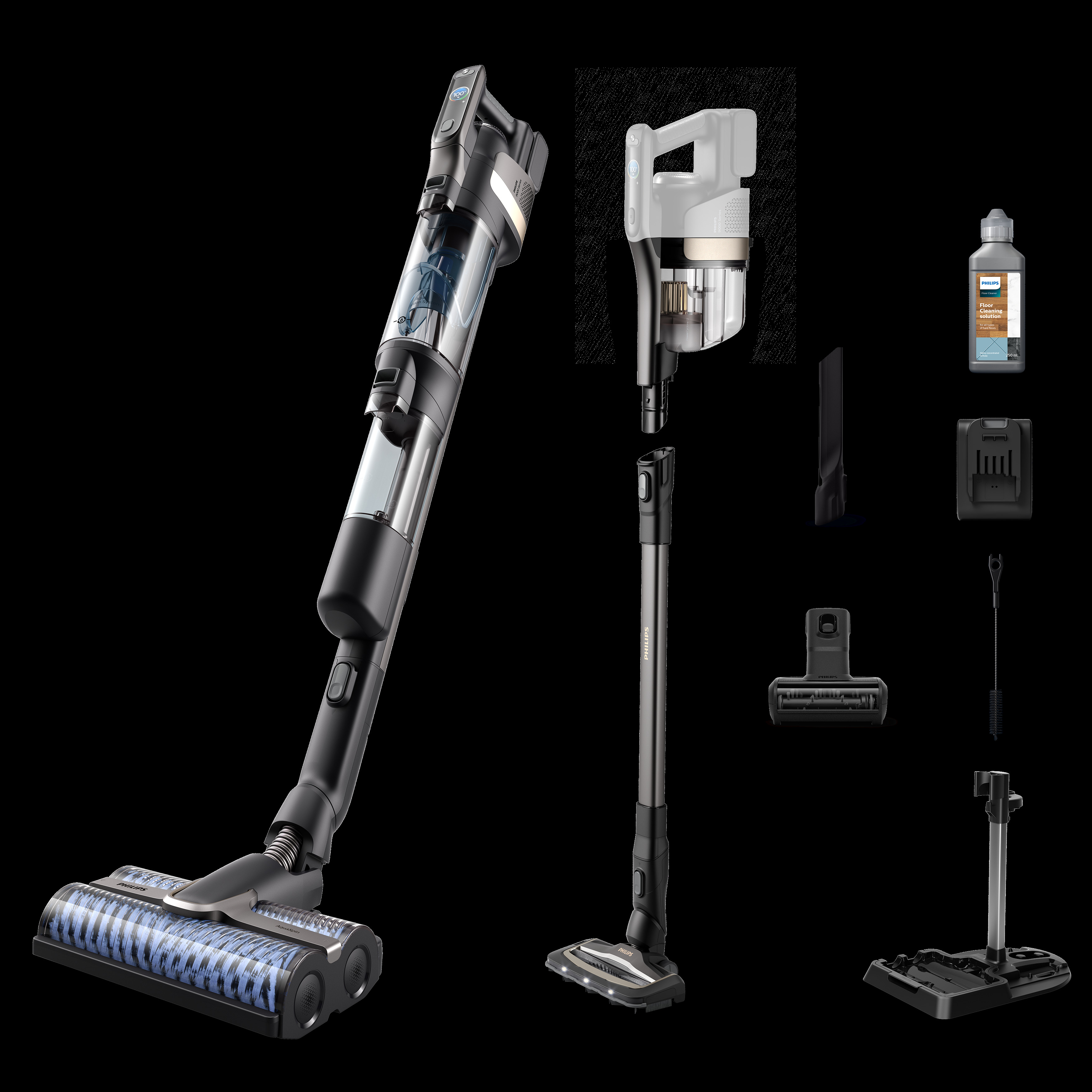 Incluye el limpiador de suelos de Philips para conseguir un resultado de limpieza profesional. Diseñado para todo tipo de suelos duros y para eliminar fácilmente la grasa, las manchas y la suciedad adherida. Cada botella sirve para 25 sesiones de limpieza.