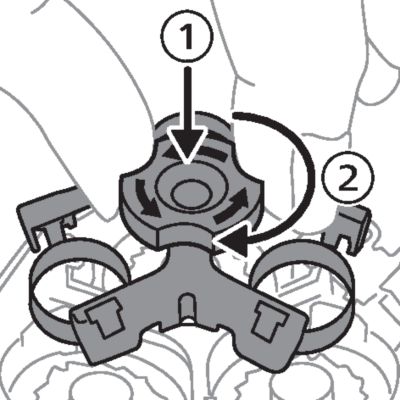 10. Put the retaining frame back into the shaving unit and turn the lock clockwise.