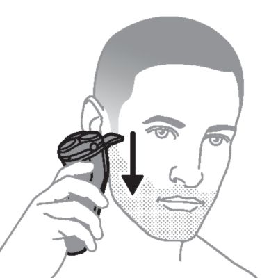 3. Hold the trimmer perpendicular to the skin and move the appliance downwards while you exert gentle pressure.