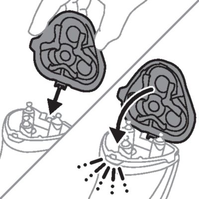 4. Remove the shaving heads from the shaving unit. Discard the used shaving heads immediately to avoid mixing them with the new shaving heads.
