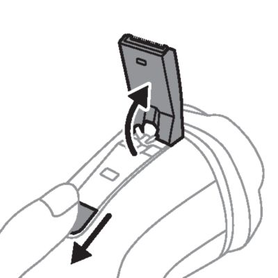 11. Insert the hinge of the shaving unit into the slot in the top of the shaver. Then close the shaving unit.